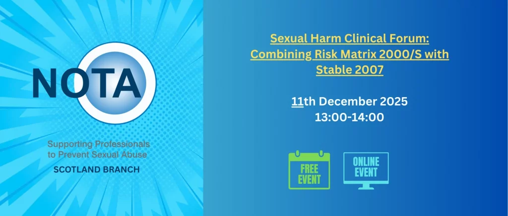 Synopsis Chair Lucy Coleman will be joined by Tracey Johnstone & Gael Cochrane, Learning, Development & Innovation Leads – Community Justice Scotland.*The forum will focus on combining Risk Matrix 2000/S with Stable 2007. We know that…